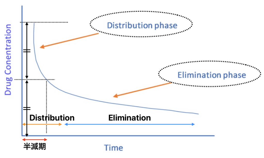 Distribution phaseと半減期について