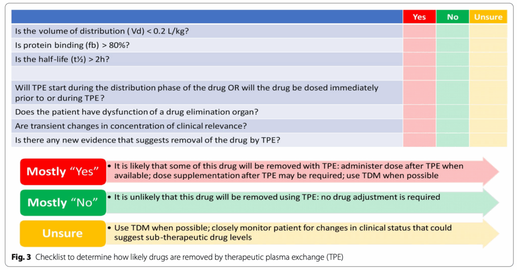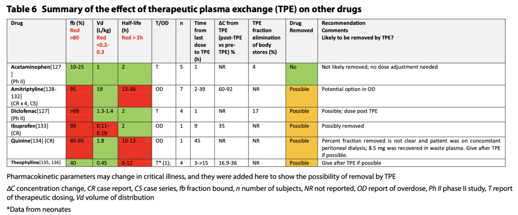 血漿交換は血液にしか介入できません。そのため、血漿交換によって影響を受けるかどうかは、血液中の薬物中の濃度に依存します。
