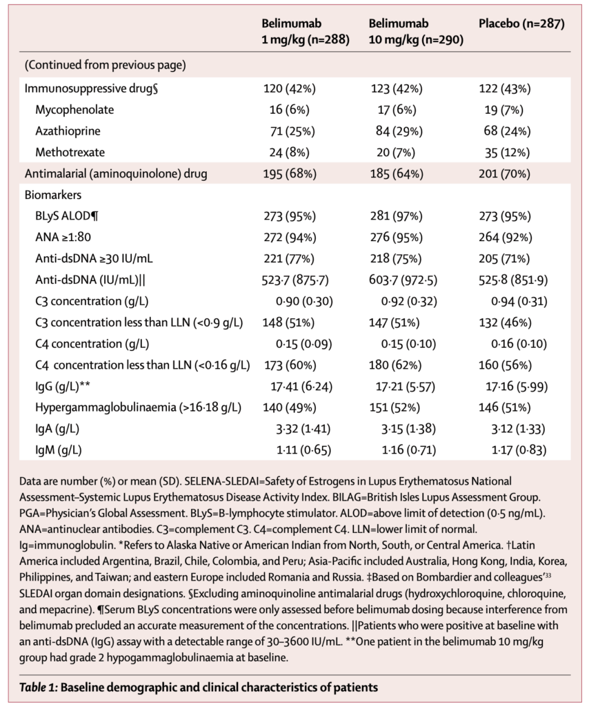 Efficacy and safety of belimumab in patients with active systemic lupus erythematosus: a randomised, placebo-controlled, phase 3 trial