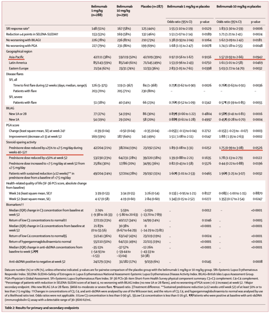 • ループス腎炎に対する解釈は、のちのBLISS-LN trialで確認されることになる