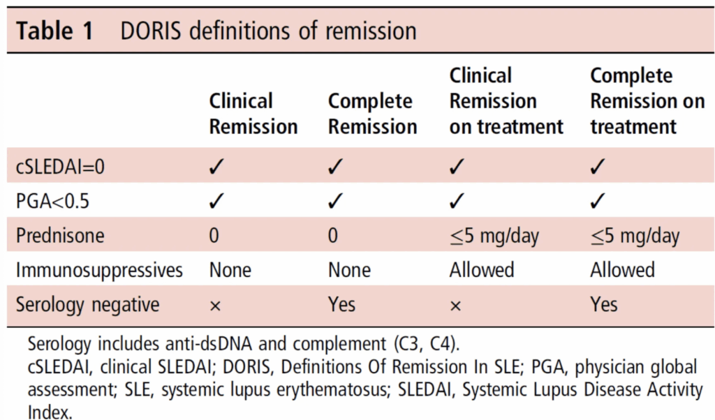 これが2021DORISで、Remission in SLEという一種類で寛解が定義されました。Ann Rheum Dis. 2021; 80(12):1508-1517.