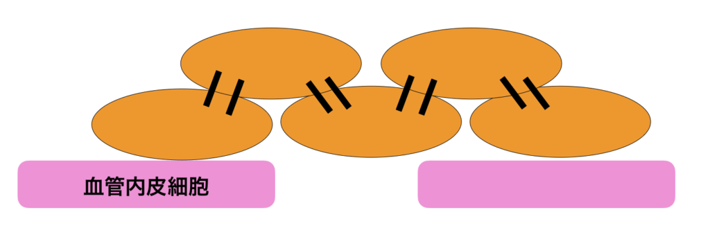 次に、フィブリノゲン=ヒモをより強力にしてがっちりと血小板同士を接着する必要があります。