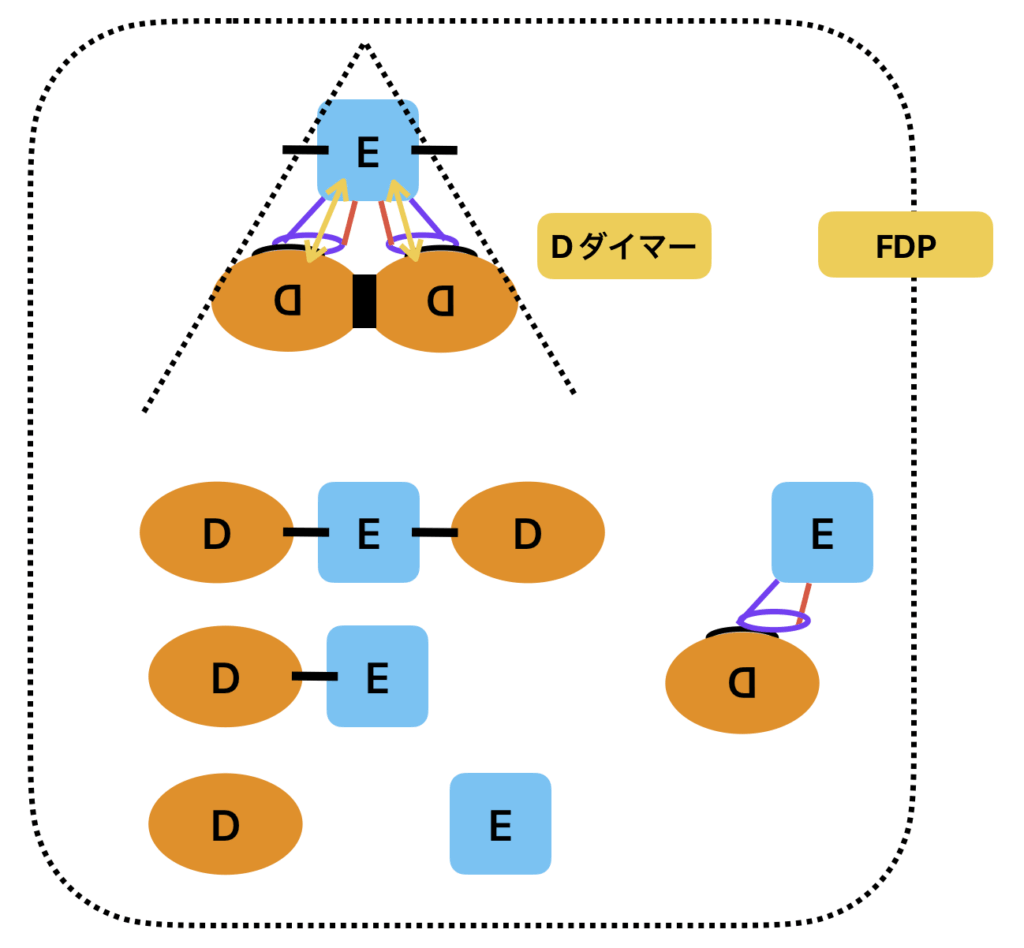 このうち、できる産物の総称がFDPで、そのうちDの二量体を含むものがDダイマーです。