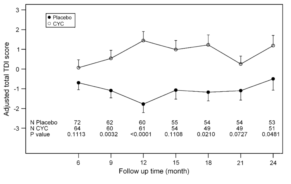 - 12ヶ月フォロー:CYC群54例、プラセボ群55例
