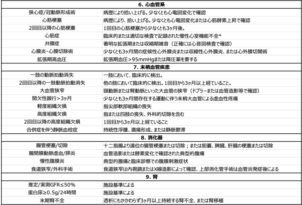 血管炎の発症後に出現・増悪した臓器障害で、不可逆と考えられ、(評価時に存在するかどうかにかかわらず)3ヶ月以上持続する症候を得点します。