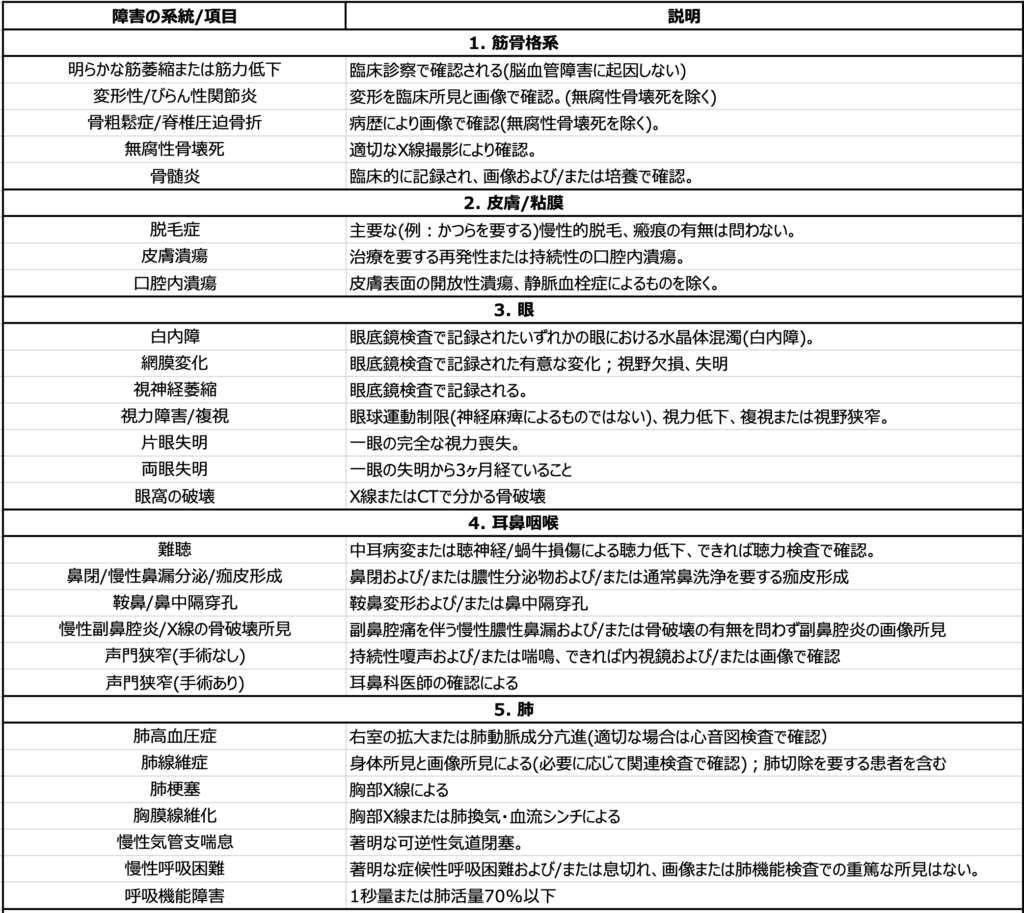 障害の定義は少なくとも3ヶ月間存在し、血管炎発症以降に生じたものとする。 - したがって、時間経過とともに、障害指数の値は安定したままか、悪化する。